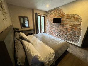Espaciosa Suite con cama King Size, un amplio baño, un hermoso balcón con vistas a los pinos y al increíble movimiento del Barrio Centro de Val’quirico